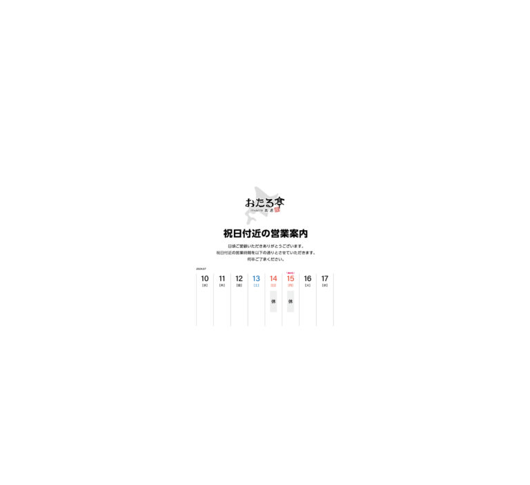 13日(日・祝)、14日(月・祝)にお休みをいただき、